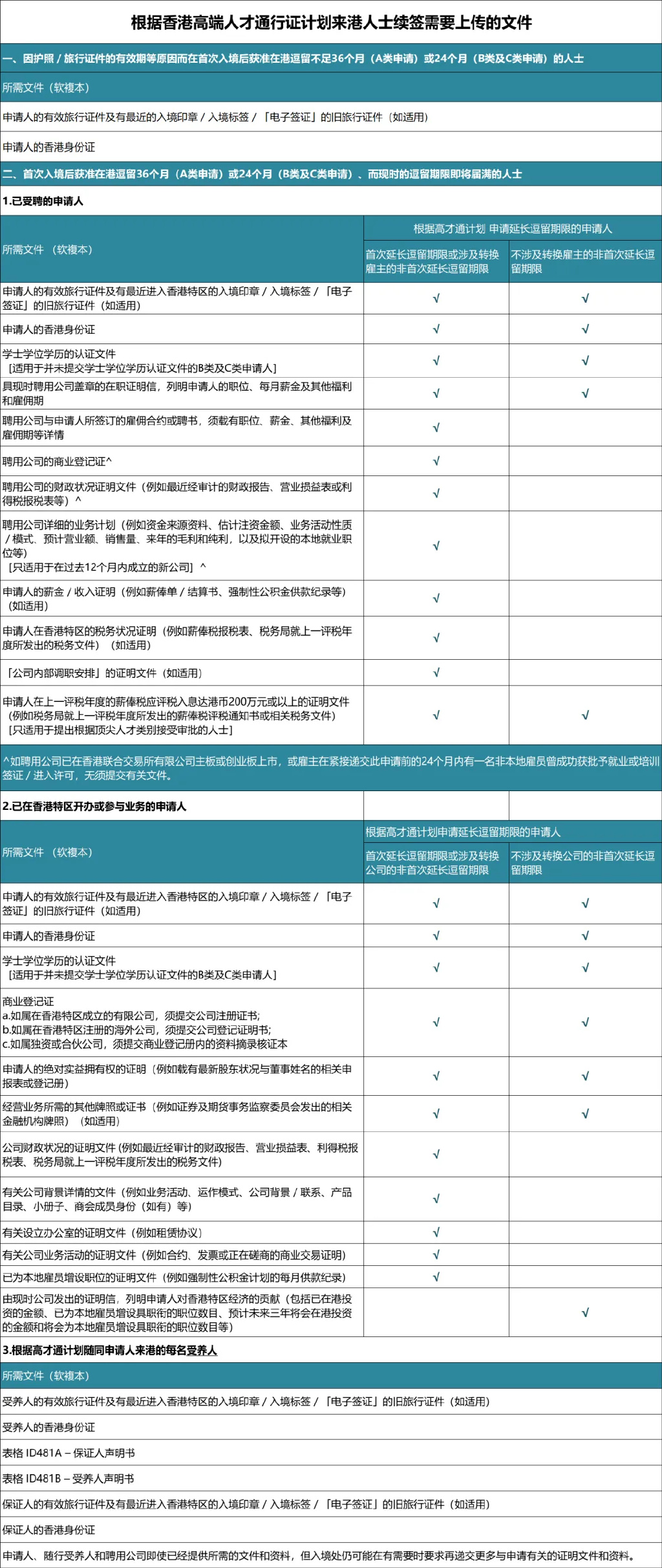 香港高才续签材料清单,大家可以对照下图所列文件进行准备,包含受雇和自雇: