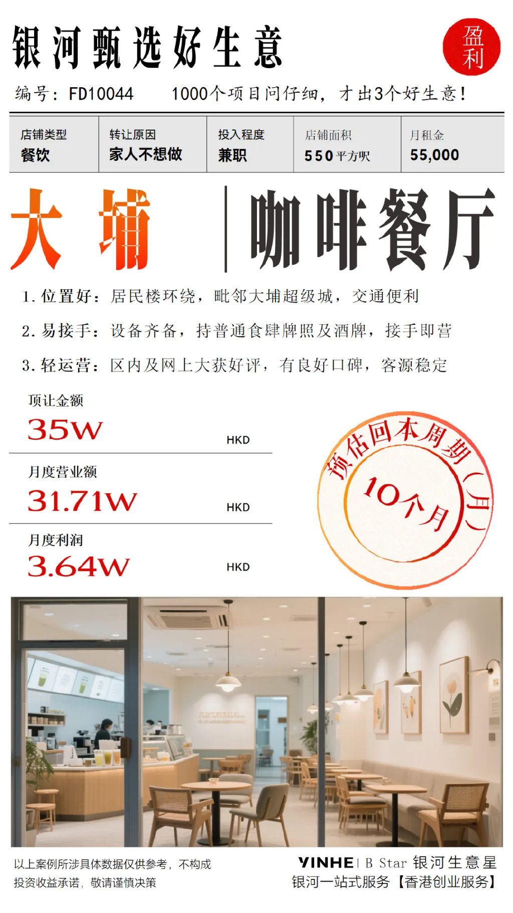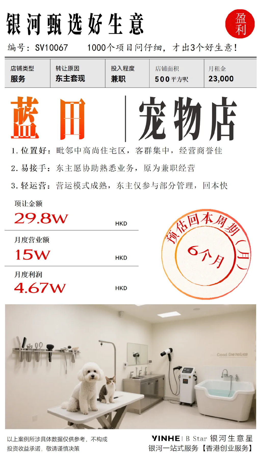 针对需要自雇续签,但不知道在香港做什么业务的朋友,银河“好生意”服务产品可以帮您在香港盘一个好生意(餐饮店、辅导班、无人快递驿站、宠物店等等),现有店铺易上手,不仅可以续签,而且回本周期可见,能带来持续的投资回报。