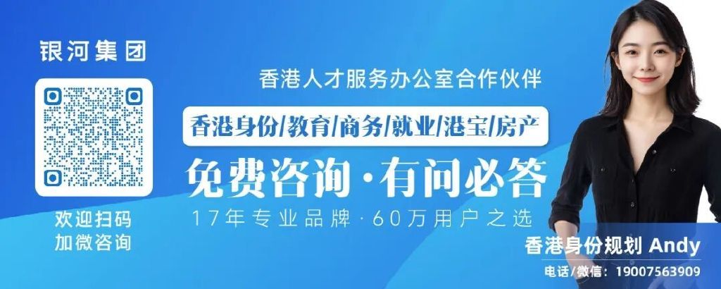 银河集团专注香港身份服务18年,也是香港人才办官网指定的长期战略性合作伙伴,银河可以为您提供香港身份规划(优才/高才/专才/留学/投资移民)一站式服务,7年全周期个性化定制香港身份申请及续签永居方案,银河专业服务咨询:19007563909(微信同号)。