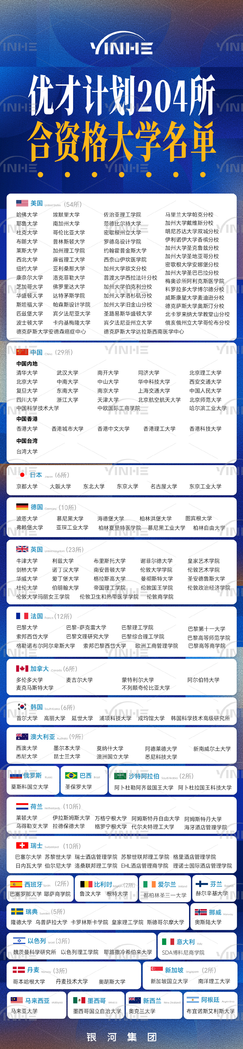 香港优才计划合资格大学名单全球共约205所,中国内地高校包括清华大学、北京大学、中国人民大学、北京航空航天大学、北京理工大学、北京师范大学、南开大学、天津大学、同济大学、东南大学、四川大学等24所,完整名单如下:
