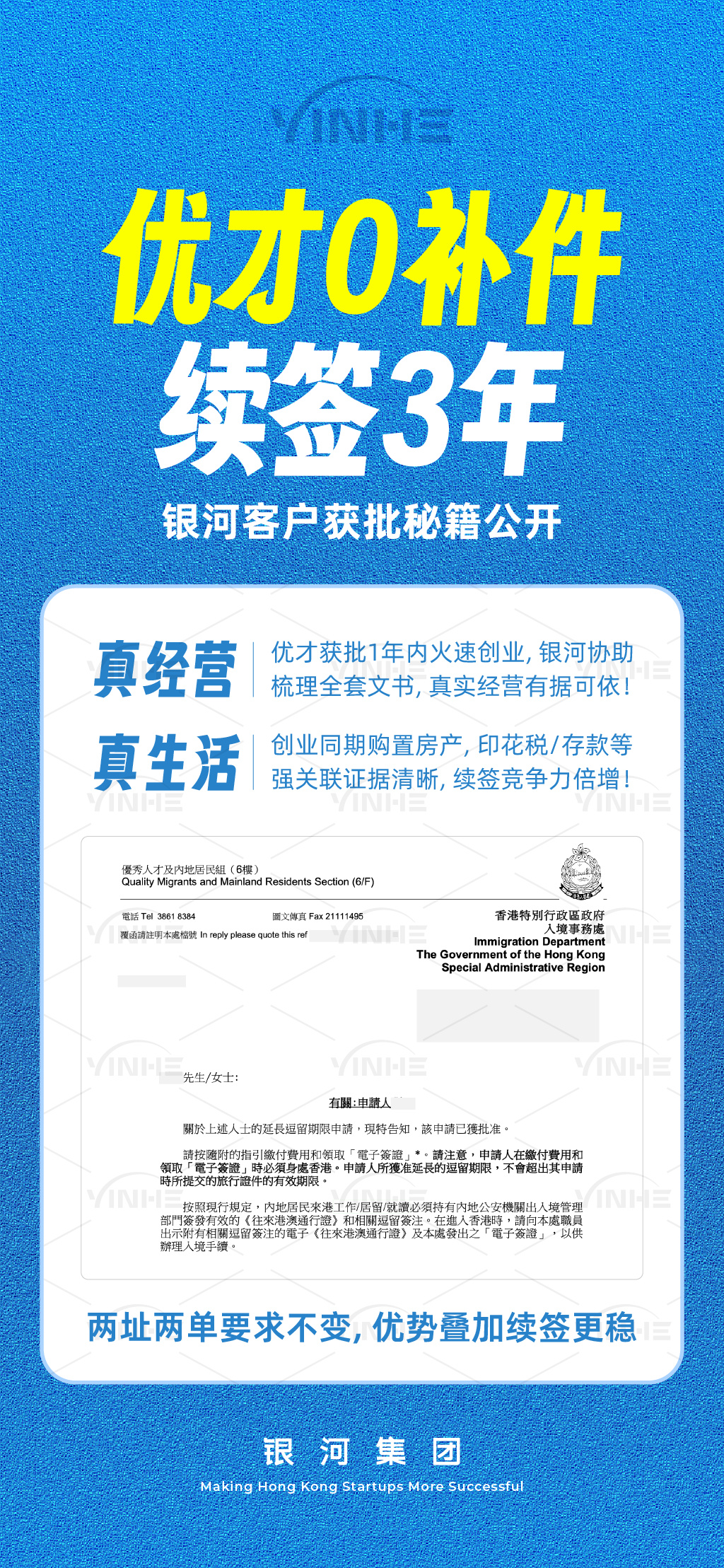 银河集团香港优才创业续签获批2+6年真实案例分享: