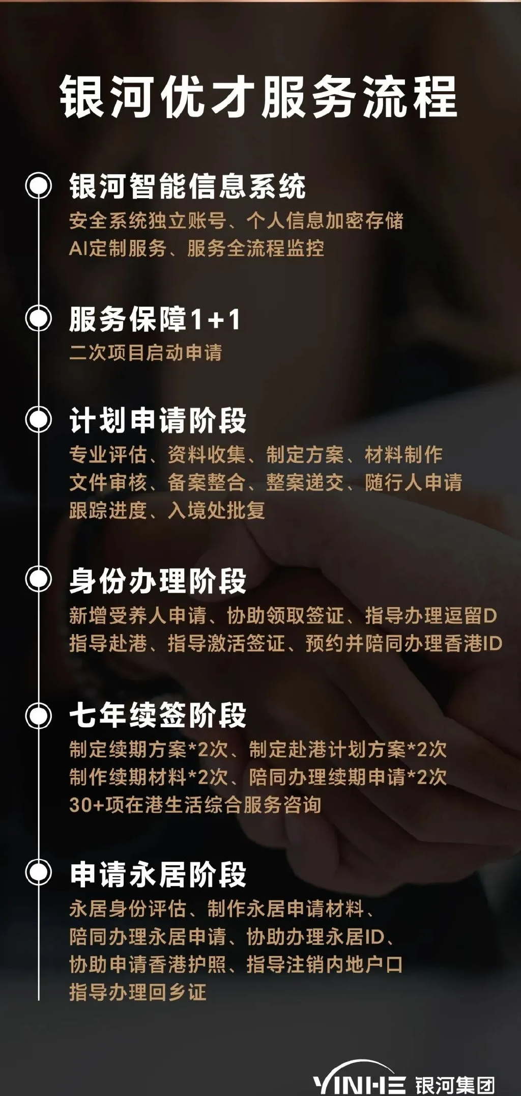 银河集团香港优才计划服务流程,为您提供从香港身份办理、激活、续签、永居一整套服务: