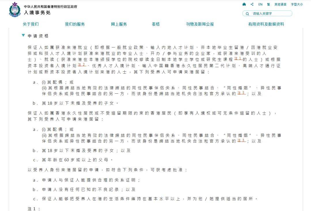 根据香港入境事务处的规定,受养人签证的申请对象包括香港居民的以下亲属: