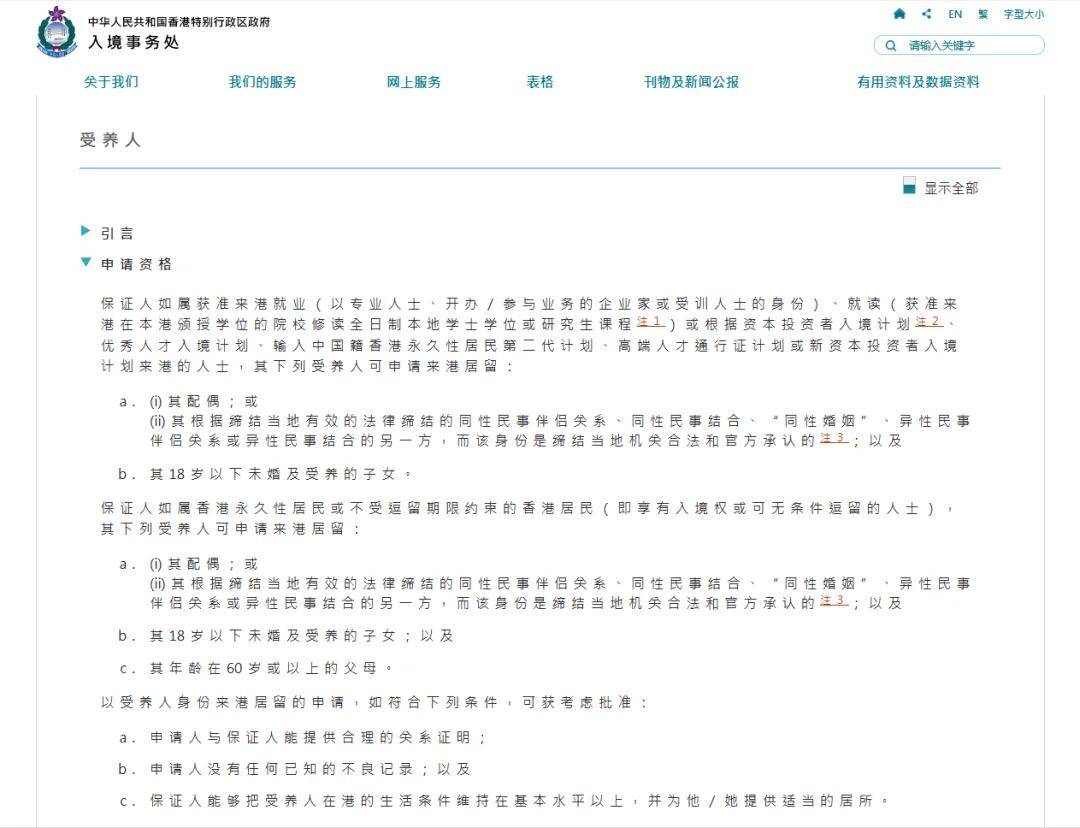 ③经济与居住条件:保证人需具备足够的经济能力和适当的居所,能够为受养人在港提供基本生活条件。