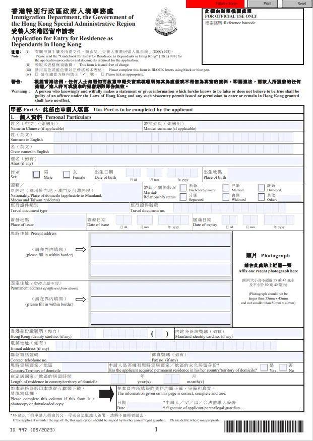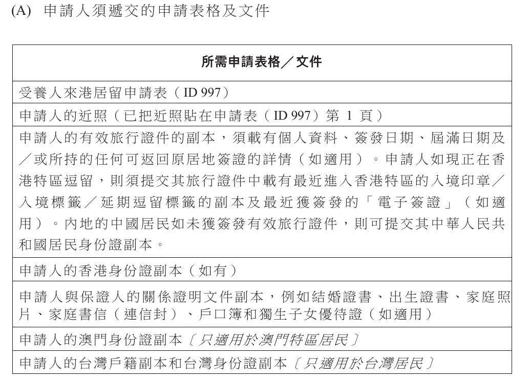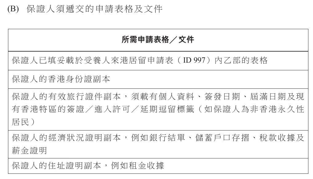 已获批签证的保证人:受养人可在保证人获批后递交申请,需额外提供香港居所证明。