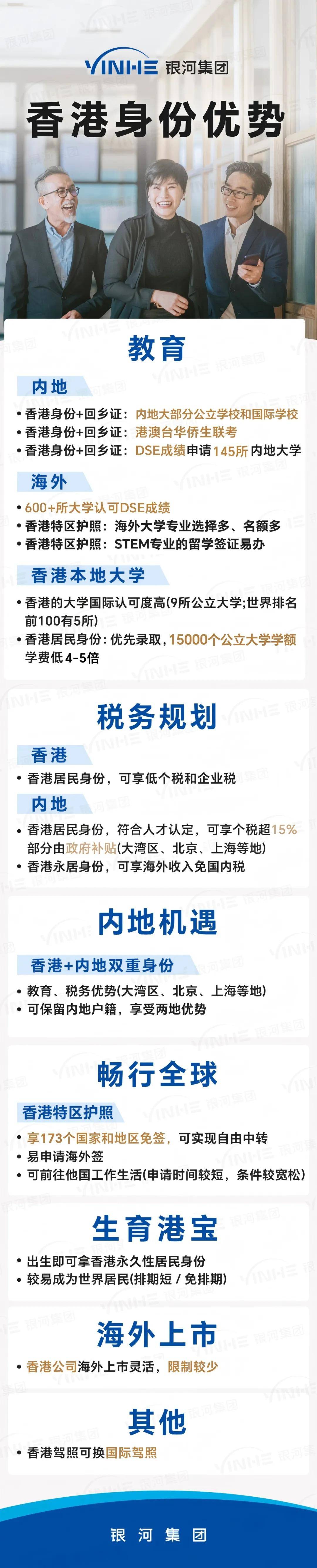 银河集团提供香港身份申请(优才/高才/专才/留学/投资等)、续签、永居、香港创业、中小学插班、房产、港宝等一站式解决方案,公司已成立18年,是香港移居中介排行榜第一名,您有任何疑问或需求请找银河集团(17319271820),欢迎来司交流(深圳/北京/上海/香港):