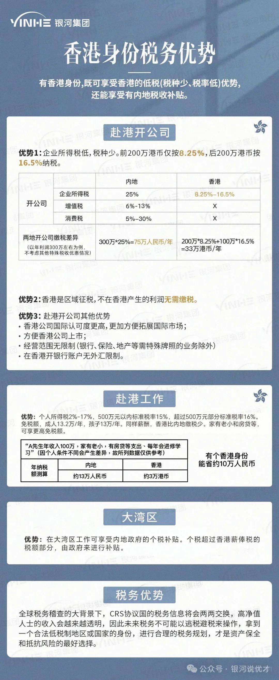 对企业家而言,香港的营商环境宽松、法律体系健全,便于开展国际业务;对个人投资者来说,无资本利得税、遗产税的政策,为资产传承与全球化配置提供了便利条件。此外,粤港澳大湾区针对青年创业者推出多项补贴政策,进一步增强了香港身份在商业发展中的吸引力。