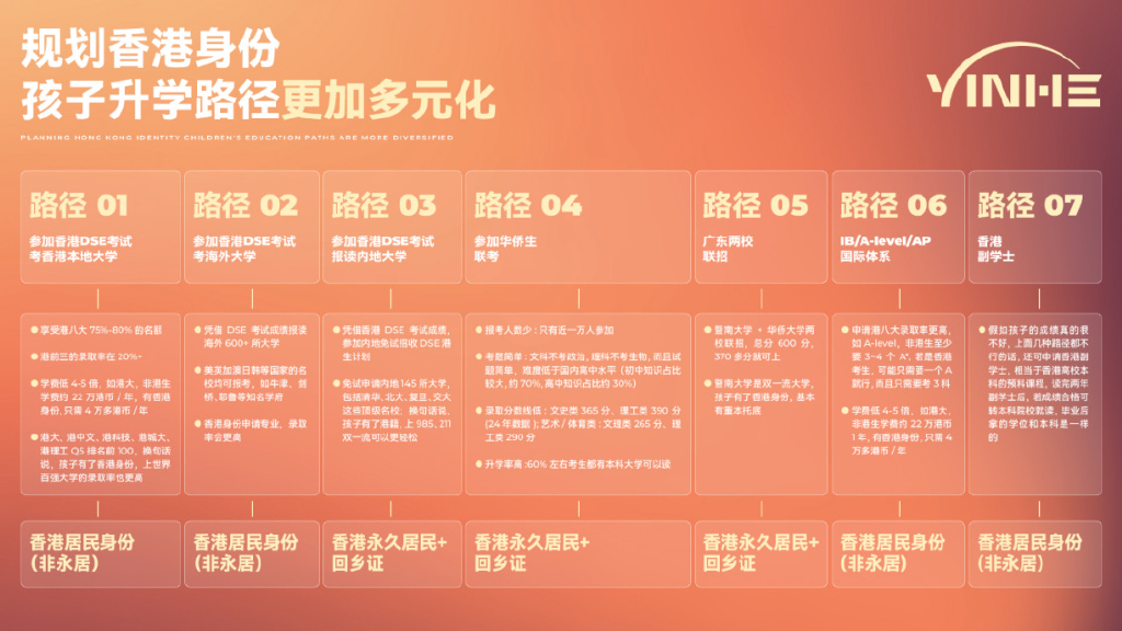 两者身份持有者的子女在香港均可享受15年免费公立教育等基本教育福利。但在升学路径上,关键区别在于,永居身份子女在获得回乡证后,可参加针对港澳台学生的华侨生联考,或凭香港中学文凭考试(DSE)成绩通过“免试招生计划”申请内地众多高校(包括清华、北大等知名学府),这些途径往往在录取分数和竞争压力上具有一定优势。