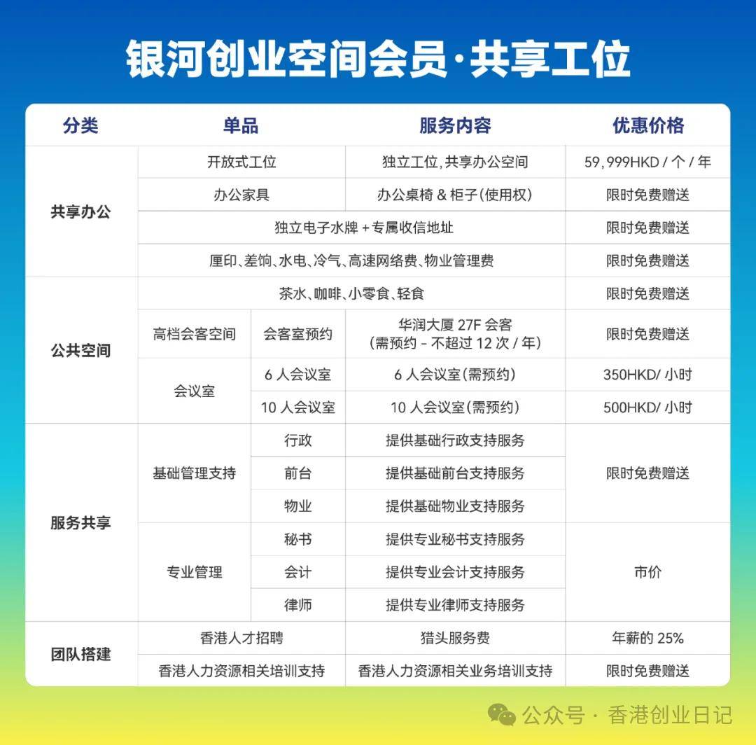 ✔ 智能创业空间:银河提供共享创业空间,无需再自行在香港租赁办公场所。银河创业空间坐落港岛中区,提供维港海景工位、智能办公环境及7×24小时智慧门禁与柜务服务,配备行政、秘书与管家式后勤支持,让你从繁杂的行政事宜中抽身出来。