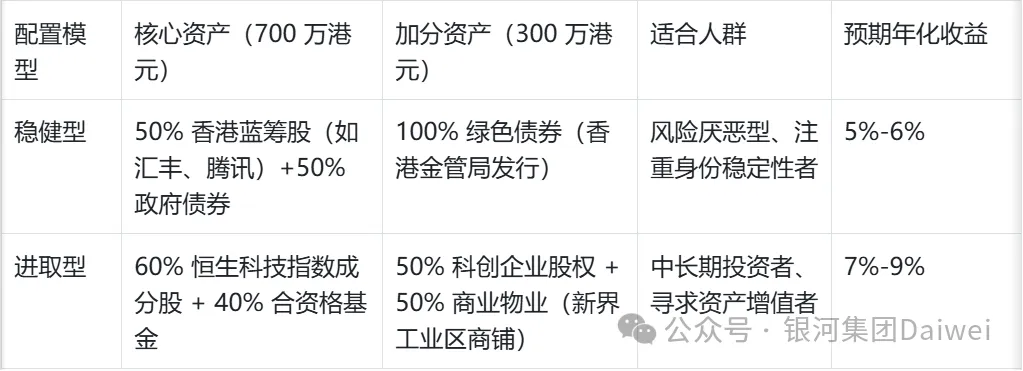 新政下的投资组合设计需兼顾 “续签安全性” 与 “收益最大化”,结合申请人风险偏好,可采用两种主流配置模型: