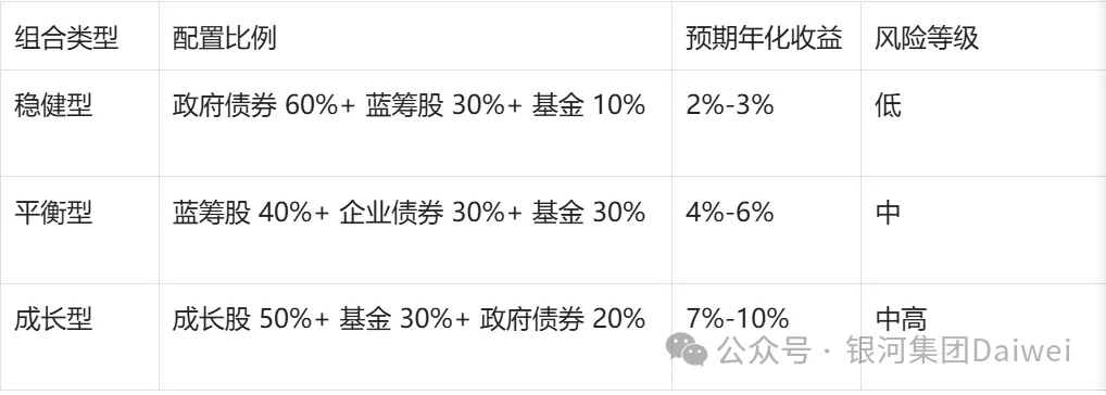 以平衡型组合为例,3000 万港元可配置 1200 万港元汇丰、腾讯等蓝筹股,900 万港元香港机场、港铁等企业债券,900 万港元恒生指数基金,既能满足政策要求,又能通过多元配置降低单一资产波动风险。