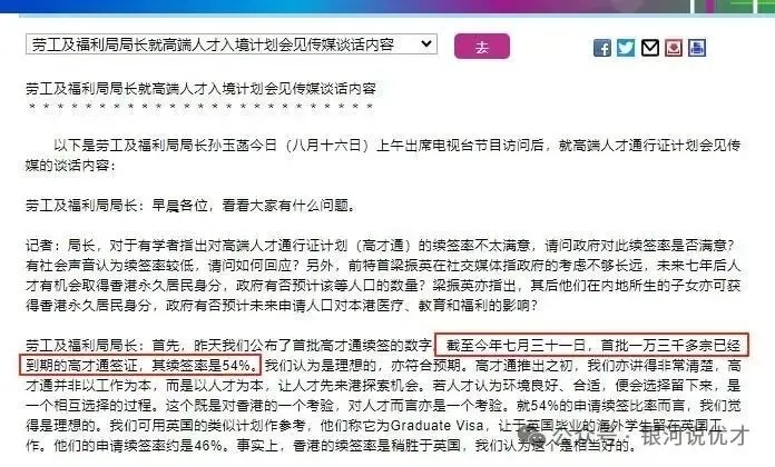 根据入境处给出的数据,到今年7月底,第一批13,678位高才的签证到期了,其中只有7394人提交了续签申请(加上提前3个月申请的2305人,总共也就9699宗申请)。算下来,申请续签的比例约54%,也就是说,有近一半的人放弃了高才通续签、也就是放弃了香港身份!