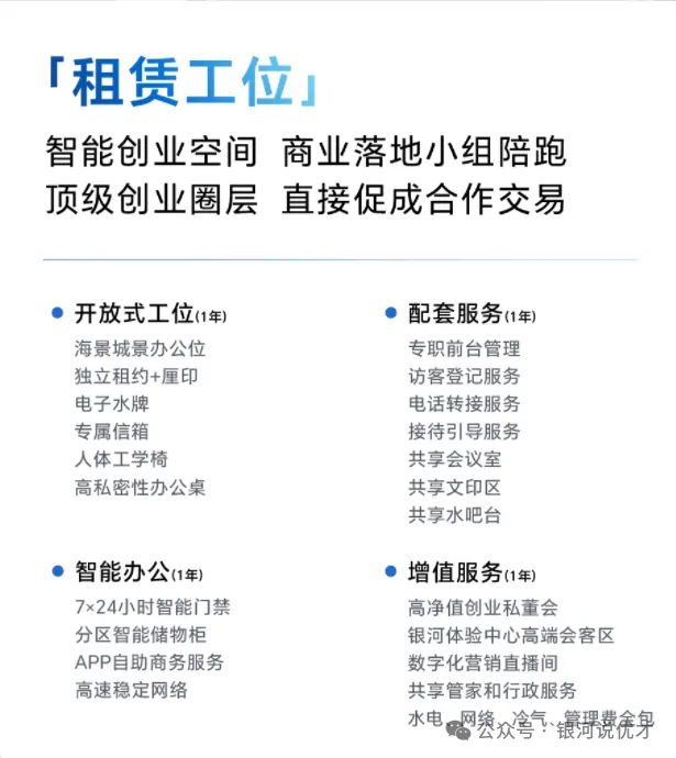 ✔ 提供办公空间:银河提供共享创业空间(含共享工位和独立办公室两者租赁服务),无需再自行在香港租赁办公场所。银河创业空间坐落港岛中区,提供维港海景工位、智能办公环境及7×24小时智慧门禁与柜务服务,配备行政、秘书与管家式后勤支持,让你从繁杂的行政事宜中抽身出来。