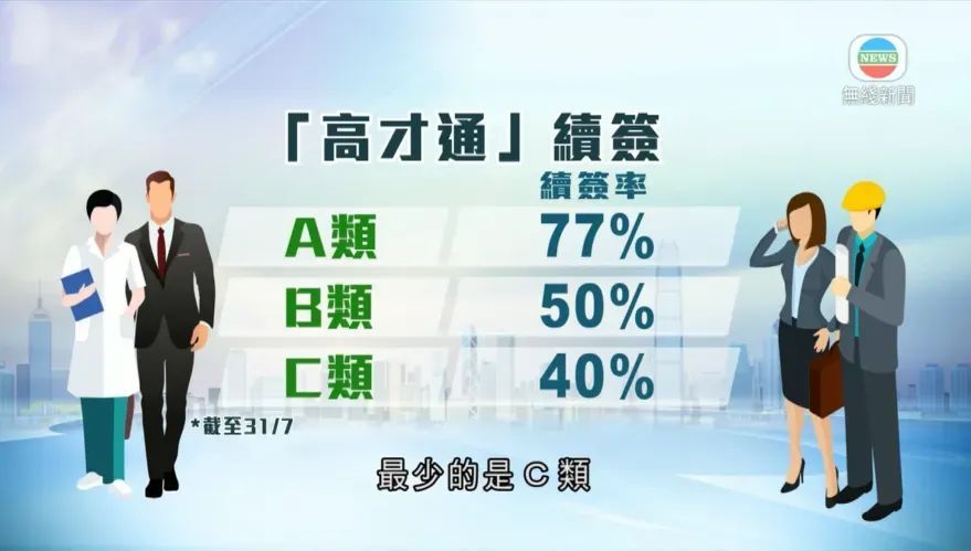 1、高才通A类续签:续签申请率最高,为77%。这部分申请人多为企业家或企业主,其业务与香港关联度深,续签意愿强烈。