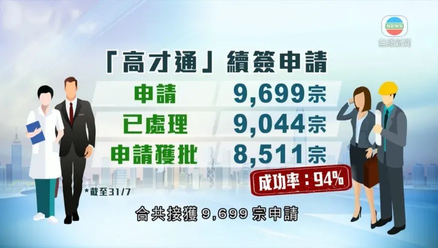 如果将签证到期前三个月内提前申请的个案也计入,续签申请总量则达到9,699宗,在已审结的9,044宗申请中,有8,511宗成功获批,整体获批率高达94%,显示出绝大多数有意留港并满足基本条件的申请人能够顺利获得续签。