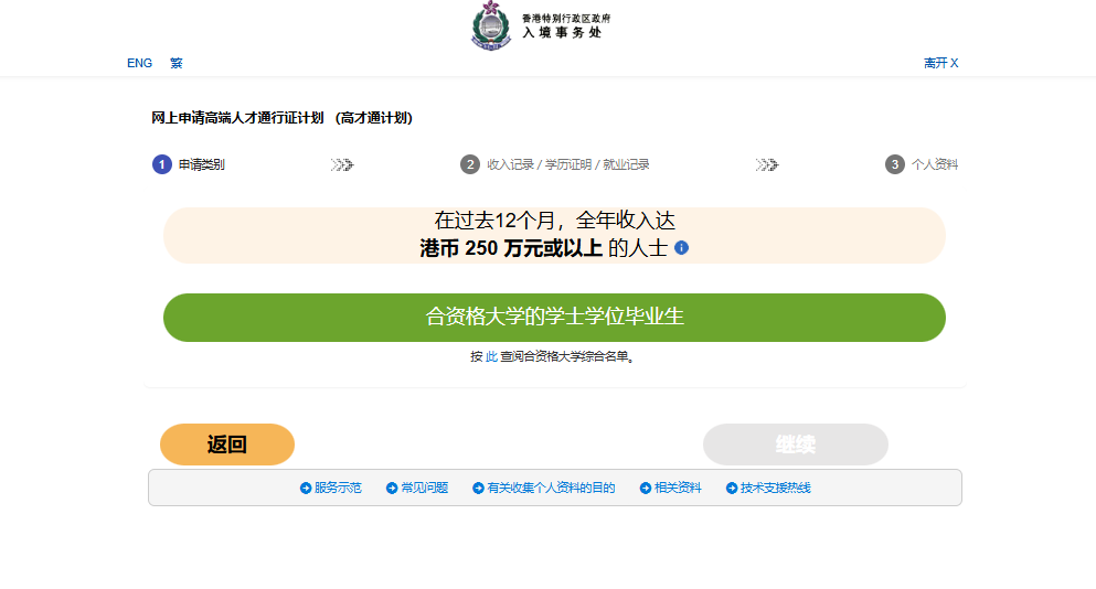 ①A类高收入通道(年薪≥250万港币)
