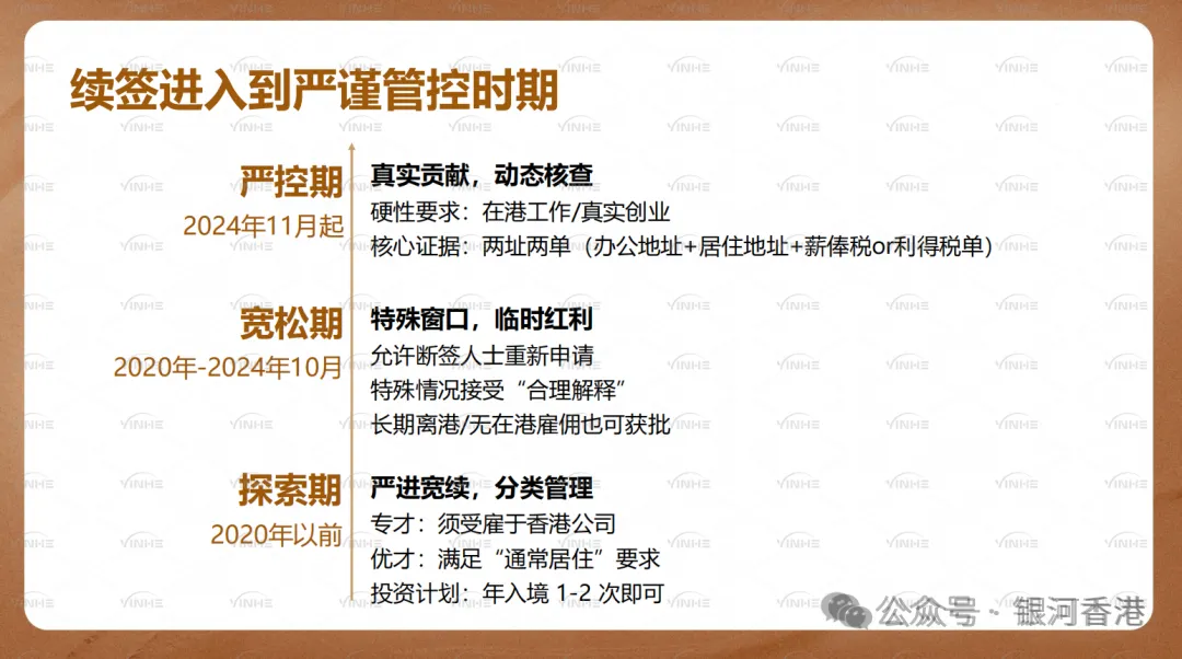 香港优才以前续签没有那么严格,很多人才存在香港“打卡”、“挂靠”、“空壳公司”等行为,2025年人才续签政策调整后,这些行为通通被拒。