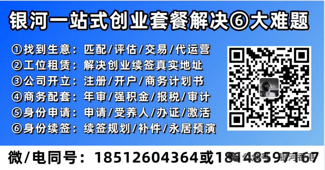 大家好!我是银河君mily,银河集团提供香港身份申请、续签、永居、创业续签、中小学插班、购房、投资入境、公司注册等服务,有兴趣随时滴滴我咨询(微信and电话:18512604364 )