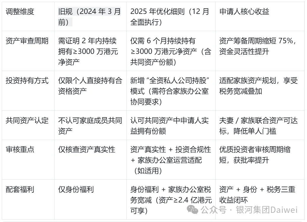 (二)新政核心红利(高净值人群专属)资产门槛适配性提升:6 个月审查周期 + 共同资产认定,让短期资产达标、家族联合持股的申请人快速符合条件,较旧规申请效率提升 3 倍;