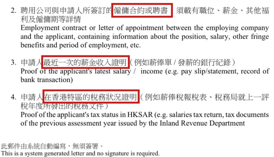 申请人需受雇于香港本地公司,持有正式的雇佣合同,薪酬福利需符合市场水平,续签的时候需要提供雇佣合约、列明工资、工资期、年假薪酬等材料