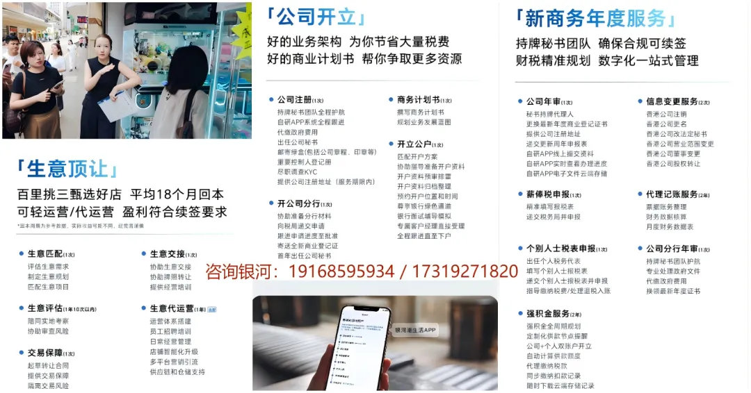 银河集团提供多种创业自雇续签服务,可根据您的实际情况匹配方案!欢迎跟银河君(电话/微信:17319271820)了解服务详情: