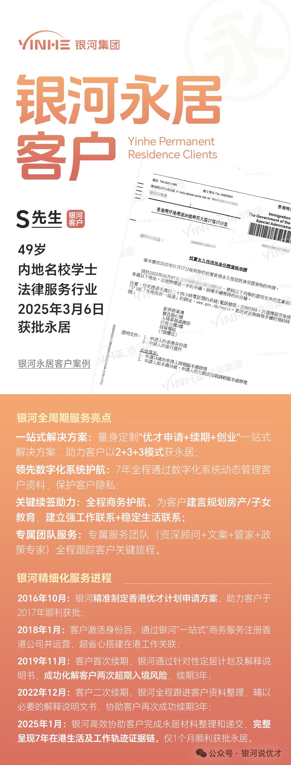 想要续签香港优才的人士,不妨免费找银河集团进行评估规划,实现顺利拿永居身份的目标。