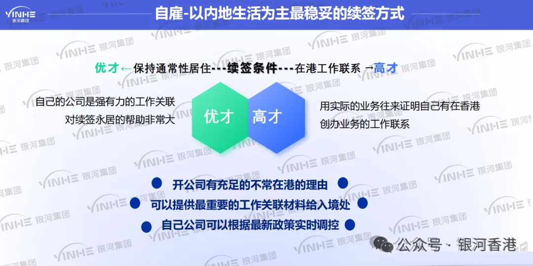 银河结合大量续签案例和市场调研,总结出续签的最佳方案就是在港创业,从而解决“公司地址”以及“利得税单”的问题。