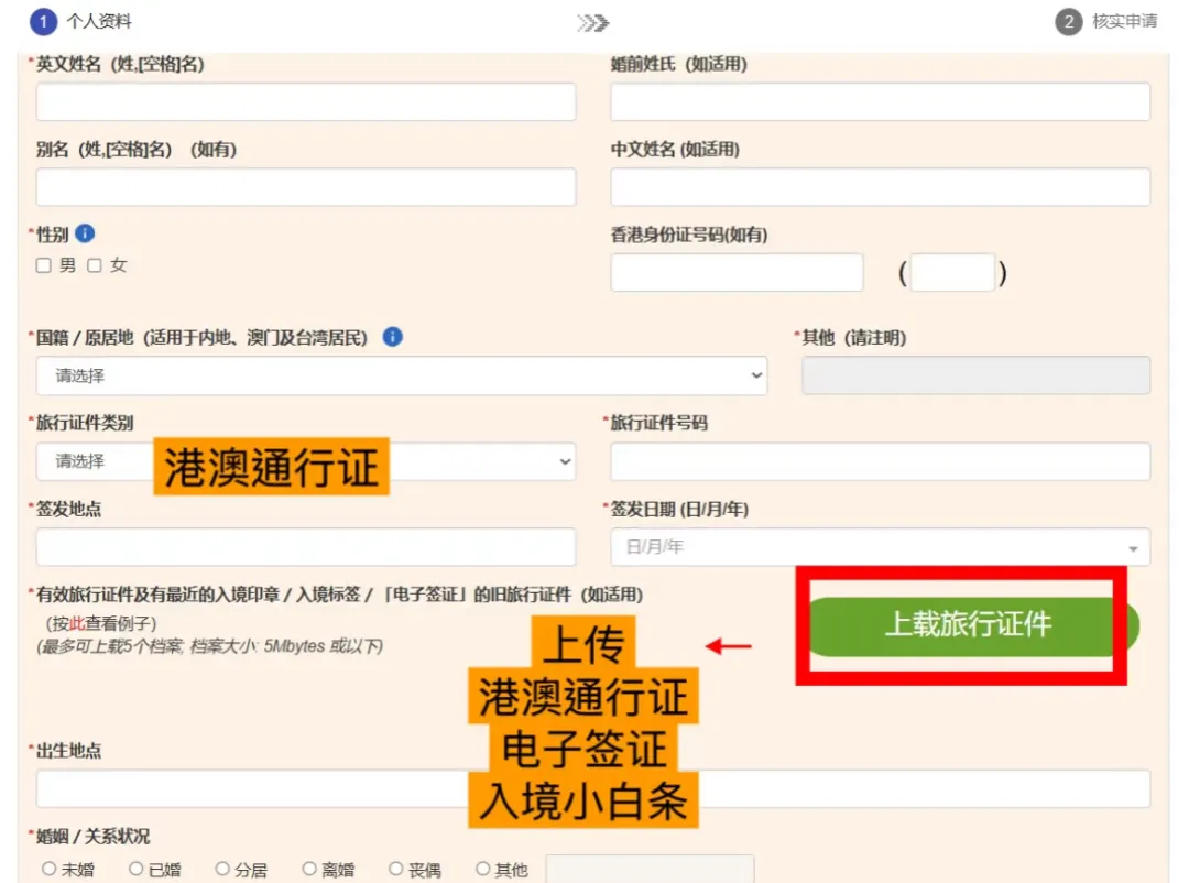 一步一步跟着网申系统操作填写,然后上传相应的证明材料,比如旅行证件、公司材料、工作材料等。