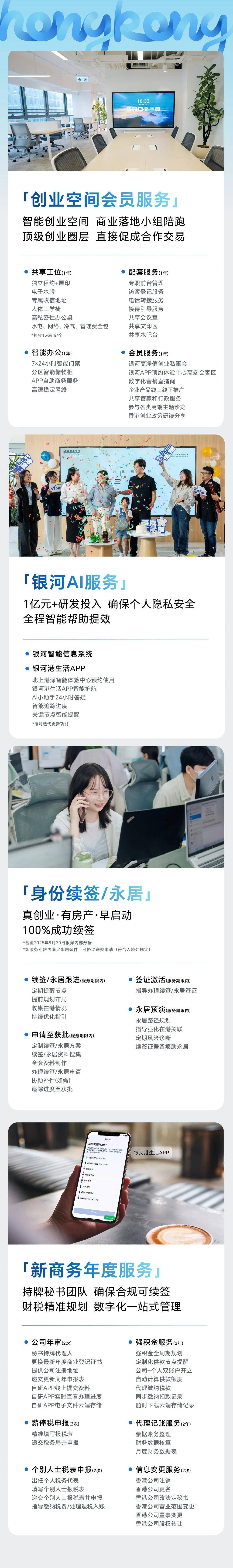 银河集团【真经营】提供香港公司开立、工位租赁、年度商务服务、身份续签永居全包办服务,按照港府要求实现真实自雇续签,至今100%成功续签,联系银河续签服务(17319271820)