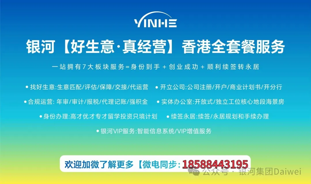 银河集团业务涵盖:香港身份申请、续签转永居,香港创业、就业咨询、房产、港宝教育等全方位、一站式的服务体系,确保申请人从申请到赴港后的身份续签永居及生活/创业得到妥善安排与保障。有需求请直接滴滴银河集团的Daiwei,享受专属的1v1咨询服务:电话/个微同V:18588443195;18588447901