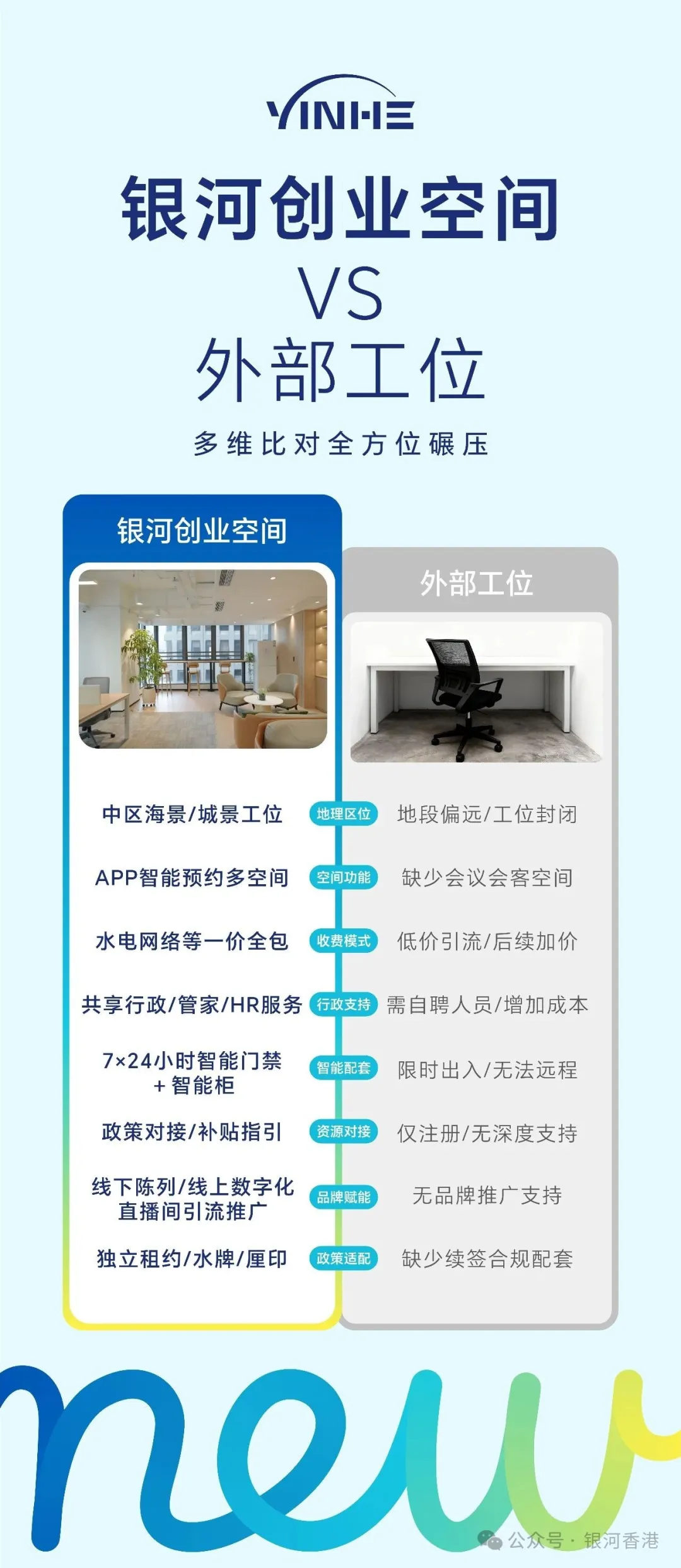 自从港府续签新规出台之后,有许多高才、优才客户联系到我们租住共享办公室。很多客户从我们这里租赁到心仪的共享办公室,银河有单独的工位租赁服务,相对传统办公室有诸多优势: