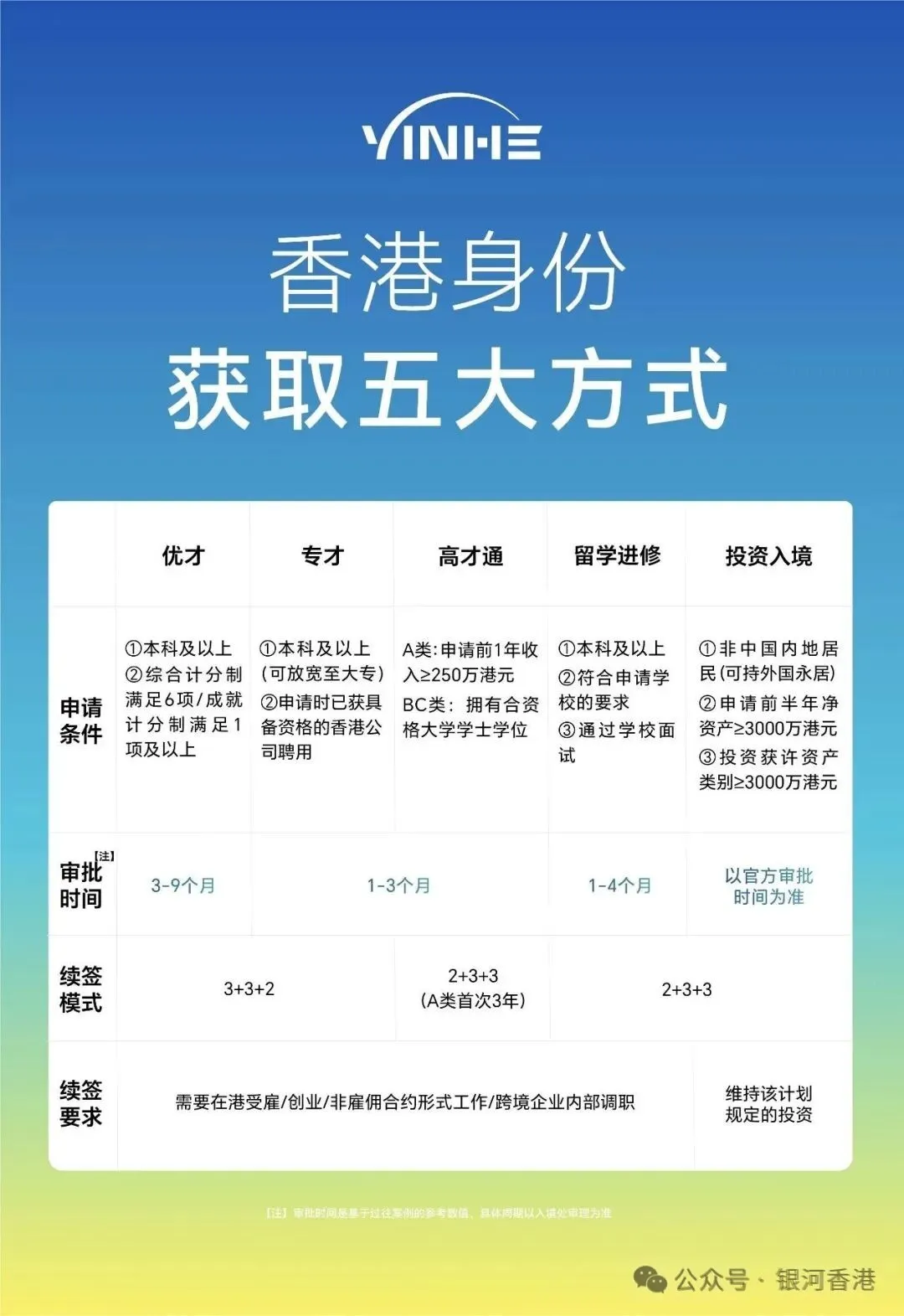 香港身份申请(优才/高才/专才/留学)、续签转永居、税务身份规划等均可找银河集团办理(DD我:18148597167),不妨通过链接测评资格,看看你适合哪种香港身份申请途径↓↓