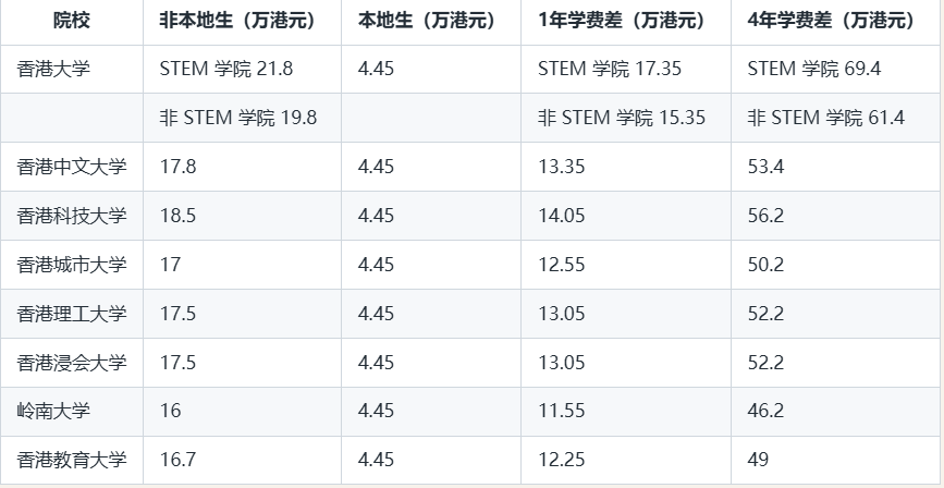 5、性价比超高:整个学位花费约14-30万港币(汇率低至0.91),仅为英美一年学费的60%,教育质量却不打折扣!