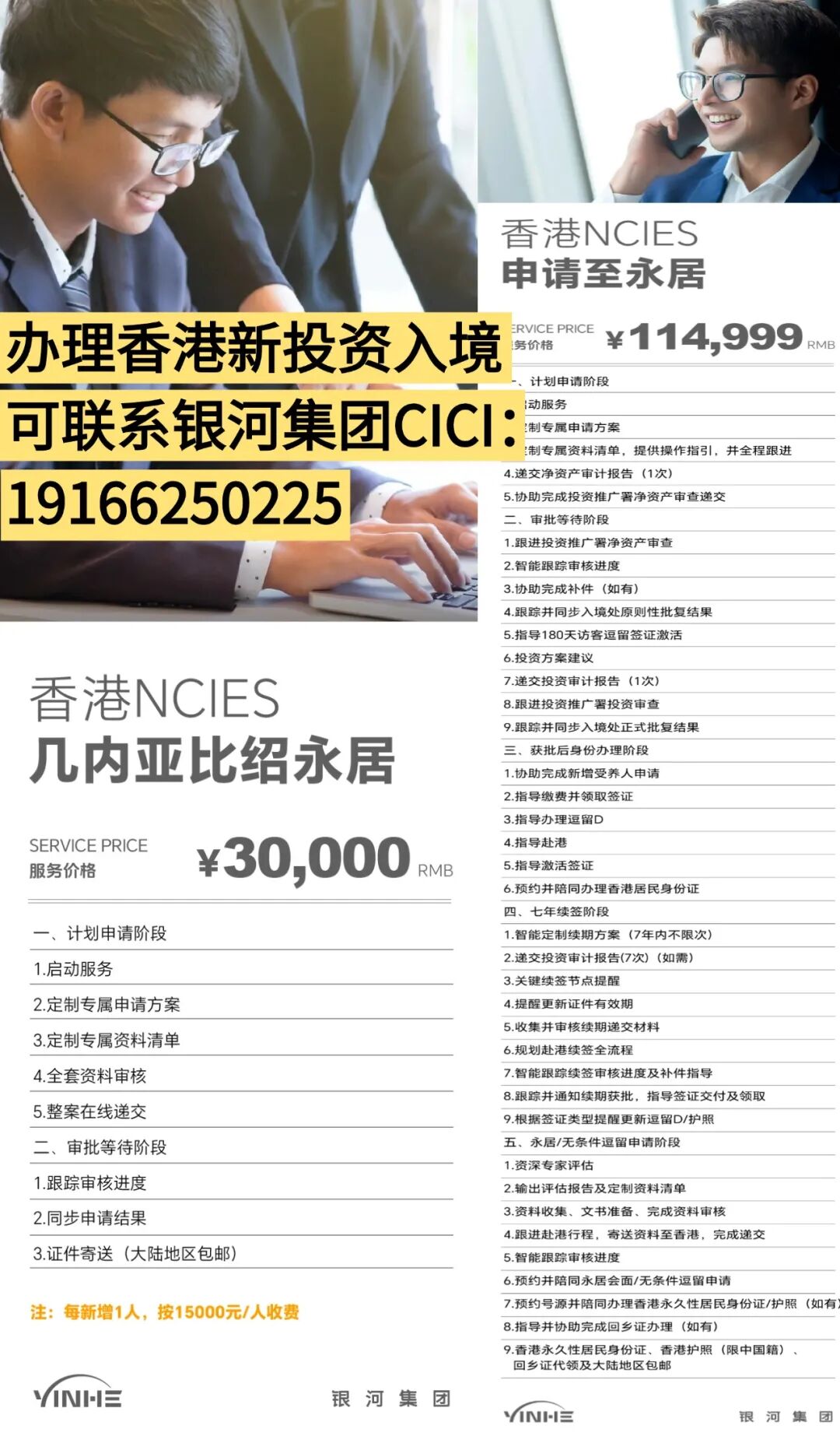 五、香港投资移民 银河集团服务案例 六、如果没有3000万如何拿香港身份? 1、香港优才计划 年龄:申请人提交申请时,必须年满 18 岁或以上。 财政要求:需证明能够负担自己及其受养人在居港期间的生活和住宿费用,而无需依赖公共援助。 良好品格:申请人不得有在香港或其他地方的刑事犯罪记录或不良入境记录。 基本学历:申请人应具备良好的教育背景,通常要求具有由认可大学或高等院校授予的学位。 计分制二选一: 成就计分制: 申请人曾获得杰出成就奖,如奥运奖牌、诺贝尔奖、国家/国际奖项;或可以证明其工作得到同业肯定,或对其界别的发展有重大贡献,如获业内颁发的终身成就奖。 根据申请条件与获批数据,香港优才计划的主要获批人群画像(适合申请类型)如下: 资深企业管理者与技术专家:拥有5年以上工作经验,尤其是在知名企业担任高管或关键技术角色,收入水平较高者更符合港府的筛选偏好。 高学历 STEM 人才:具备海外名校硕士或博士学历,专业背景属于科学、技术、工程或数学(STEM)等领域,在新评分系统中具备显著优势。 企业家及创业者:如企业主或持股人,企业年盈利超500万港币或拥有上市公司股份,港府目前对此类人才高度重视。 知名企业从业背景:曾就职于上市公司、《福布斯》全球2000强、《财富》世界500强或胡润中国500强企业等跨国或大型机构。 具国际工作经验者:拥有2年以上海外工作经历,精通外语,具备国际化视野与跨文化沟通能力。 紧缺行业专业人士:尤其在金融、科技创新、国际贸易等领域拥有丰富经验的专业人才。 英语能力突出者/外语突出者:精通英语或其他语言,并具备海外学习或工作背景,有助于在“国际经验”“名校背景”等评分项中获得加分。 来港意愿强烈者:包括已成家并计划携家庭一同赴港,或在赴港计划中明确表达扎根意愿、职业发展规划与香港需求高度契合的申请人,此类意向更受港府青睐。 适合跨界人才:无论行业背景是金融、科技、文化艺术或体育运动,只要符合人才清单标准或具备相当资历,均有机会申请。 香港高才通计划主要分为3类申请人群: -大型企业高管、顶尖金融机构负责人、成功企业家。互联网大厂高薪技术专家或高级管理人员。年收入达标(年收入达250万港币及以上或等额外值币)创业者或企业股东(需提供完税证明等可靠收入凭证)。 -顶尖名校的优秀应届或毕业不久的毕业生。 无需提前获聘:与专才计划不同,高才通在申请时不需要先获得香港公司的聘用。高才获批后,申请人可以在香港自由求职、换工作或创业,只需通知入境处即可,无需重新申请。 香港专才计划是港府于2003年起实施了一项名为“输入内地人才计划”的人才引进策略,目的是吸引具备香港所需但本地又缺乏的特别技能、知识或经验的内地居民来港工作。 专才计划要求申请人在递交申请时,必须已获得香港本地公司的聘用,并满足以下申请要求: 学历:申请人必须拥有本科及以上学历,特殊可放宽至大专; 工作:申请人需获得香港公司的正式聘用,所从事的工作必须与其学历或工作经验相关,且申请人的薪资待遇需与本地市场相符。 放宽8项技术工种赴港:港府将新增8项技术专才赴港,包括:新型工业技术员、护士、飞机维修技术员、海事技术员(本地船只)、资讯科技技术员、升降机/自动梯技术员、建筑信息模拟协调员、电业技术员,总配额10,000个,每工种上限3,000个,先到先得,为期3年。 人才清单扩容:如专才申请者,符合香港最新60项人才清单,对比之前51项,新增金融科技、绿色航运等9大领域,符合清单者豁免本地招聘困难证明,可快速赴港。 审批标准明确:核心审核点是“职位”和“申请人”的双重匹配性,即证明该职位无法在本地招聘到合适人才,而申请人恰好具备该岗位所需的独特技能、知识或经验。 成功率相对较高:对于材料齐全、雇主资质良好、人岗匹配度高的申请,成功率非常可观。 处理周期短:在所有材料准备完备的情况下,通常4-8周内即可获得审批结果,效率远高于优才计划。 学历要求宽松:并未硬性规定申请人必须拥有顶尖学历,更注重专业技能和工作经验的匹配度。对于经验丰富但学历不突出的技术专才,是一个重要机会。 无行业限制:不限特定行业,覆盖金融、IT、贸易、工程、法律、艺术、学术研究等各行各业。 涵盖内部调职:对于跨国企业或在内地/海外有业务的香港公司,派遣员工来港内部调职是专才计划的重要应用场景,此类申请认可度高。 4、香港留学进修计划 对香港身份感兴趣的朋友,现在就可以点击链接在线评估下自己符不符合申请要求,测评后会有专业的顾问老师(微/电:18145843255,19166250225)为你答疑、给你推荐合适的香港身份申请途径▼▼▼ 以下是香港身份中介排名Top10的机构: 银河集团提供一站式服务,其专业团队可根据客户需求制定方案,如香港身份规划、赴港创业、在港做生意、身份续签等服务需求来提供在港创业、安家等”一站式“解决方案,帮助企业主在香港的业务快速落地并顺利运营。 目前,银河集团总部位于深圳,在香港、北京、上海均设有分公司,如您需要线下咨询,可以联系银河小助理(微/电:18145843255,19166250225)。 点击小程序免费拿申请香港身份资料包无需提前获聘,自由度极高:与“专才计划”需先获得香港公司聘用不同,优才无需提前获得雇主担保,可自