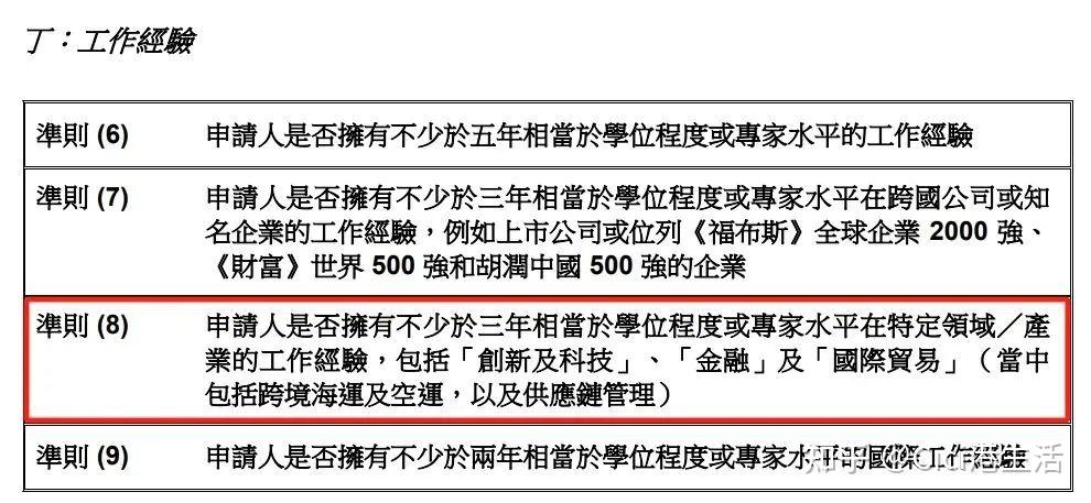 ⑧不少于2年跟原居国家或地区以外的国际工作经验