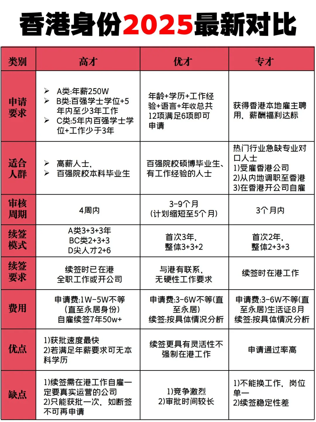 香港优才、高才通、专才计划有什么区别?5维度硬核对比(申请条件|优劣|续签|永居)