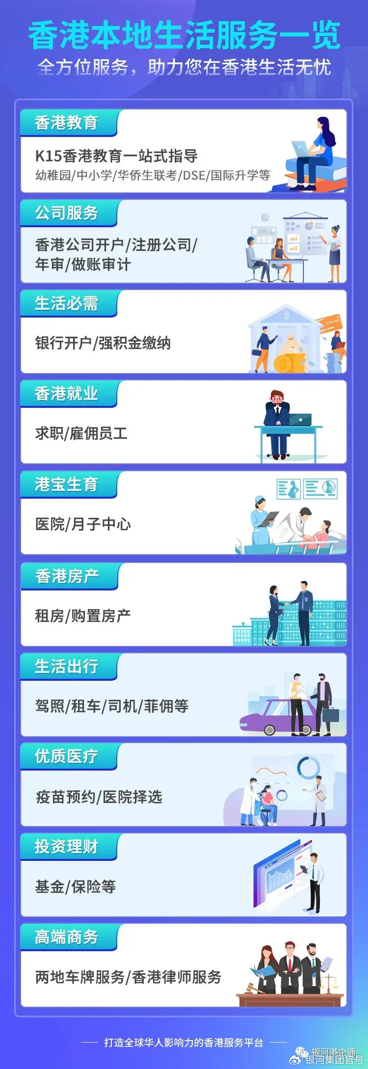 此外,如果你计划通过香港事业(注册香港公司)去香港发展,银河集团可提供香港公司注册、更名、增资、营业范围变更、税务申报、董事变更、公司开户/个人开户、商标注册、年审、做账审计、强积金、就业,创业等诸多商务服务,有单个或多个服务需要的可以联系我们代办,后续便可以顺利作为留学进修续签的申请条件。
