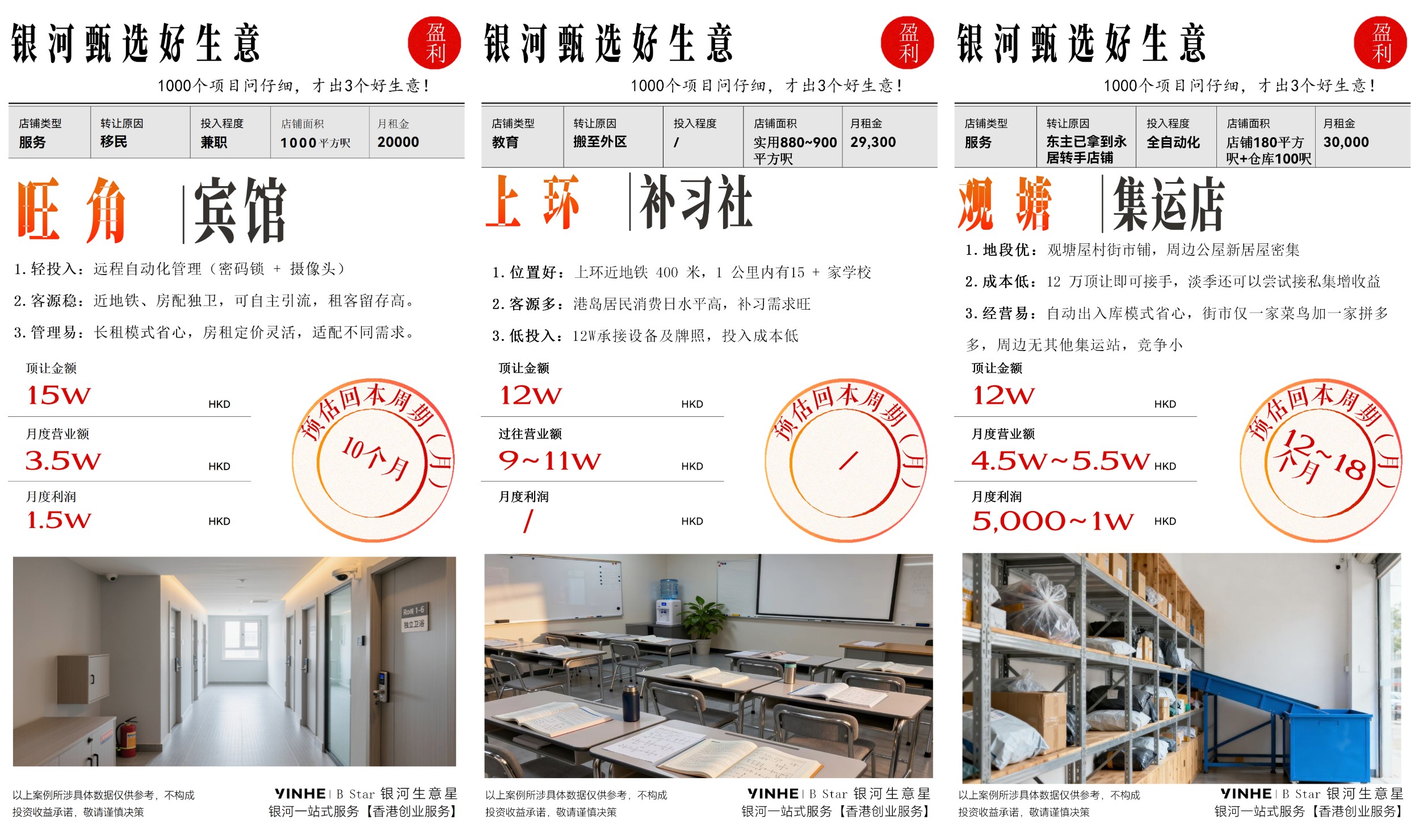 第二种,没有业务及没有创业经验的人士,银河“好生意”提供经过严格筛选的成熟生意顶让及配套全链条服务,主打 “轻运营” 模式,并提供 “全托管代运营” 服务,让你实现远程即可掌握经营状况,按月收取利润,续签+赚钱两手抓!