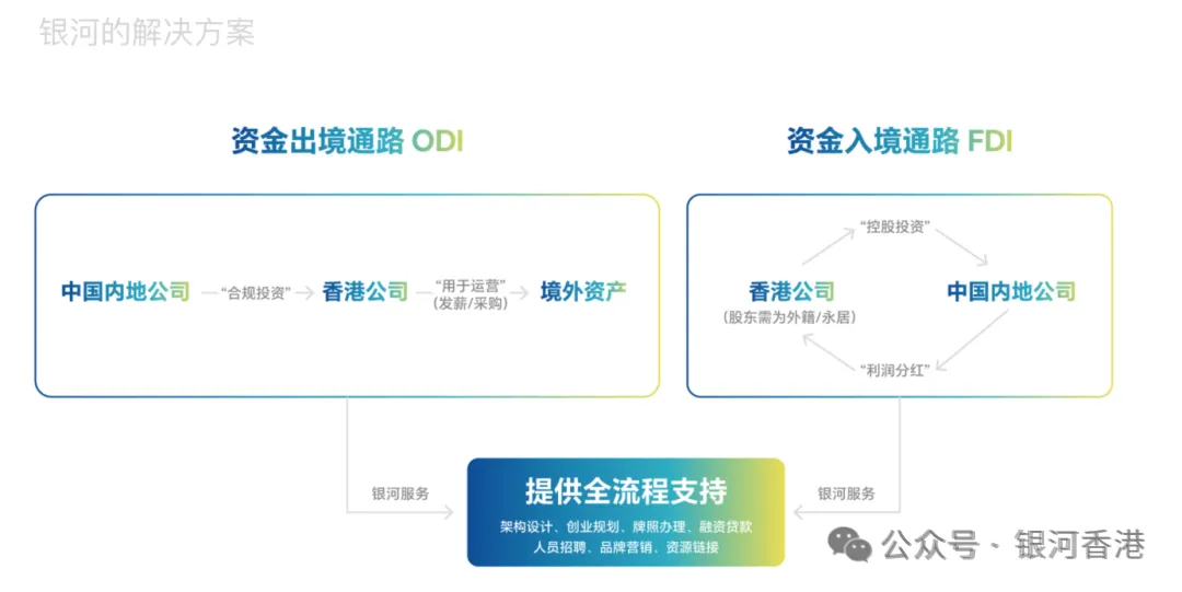 银河解决方案:协助打通资金链路(构建高效+合规的跨境资金流),通过ODI备案,将香港公司利润以合规分红形式汇回内地,合规申报香港账户直接结算东南亚业务,降低汇损。