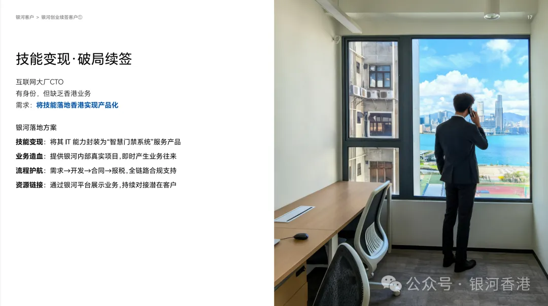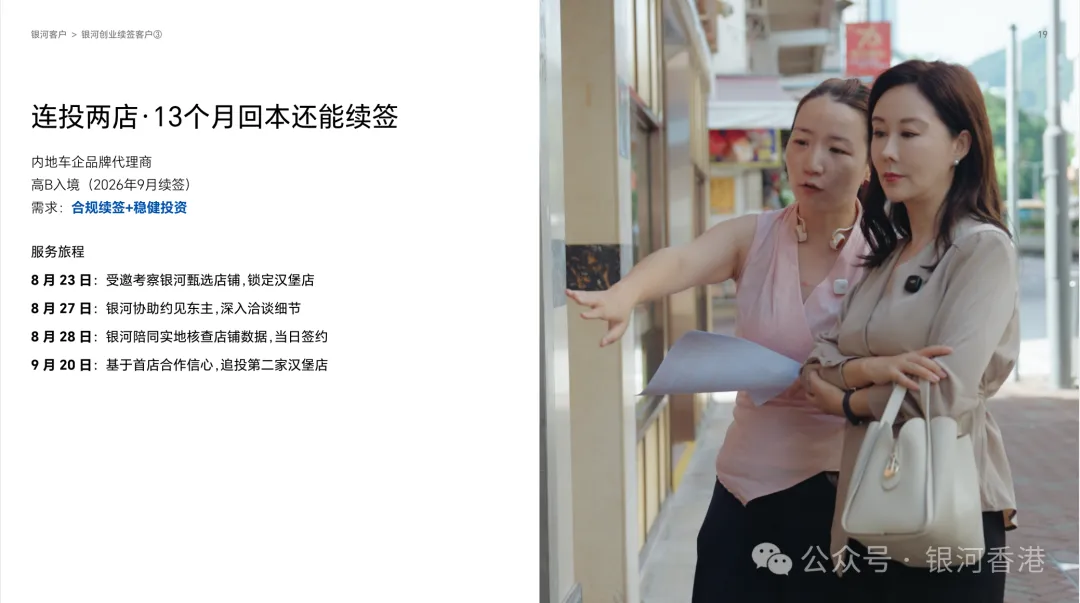 银河好生意、真经营服务案例有很多,有的客户是为了续签香港身份,有的客户是为了做出海业务。