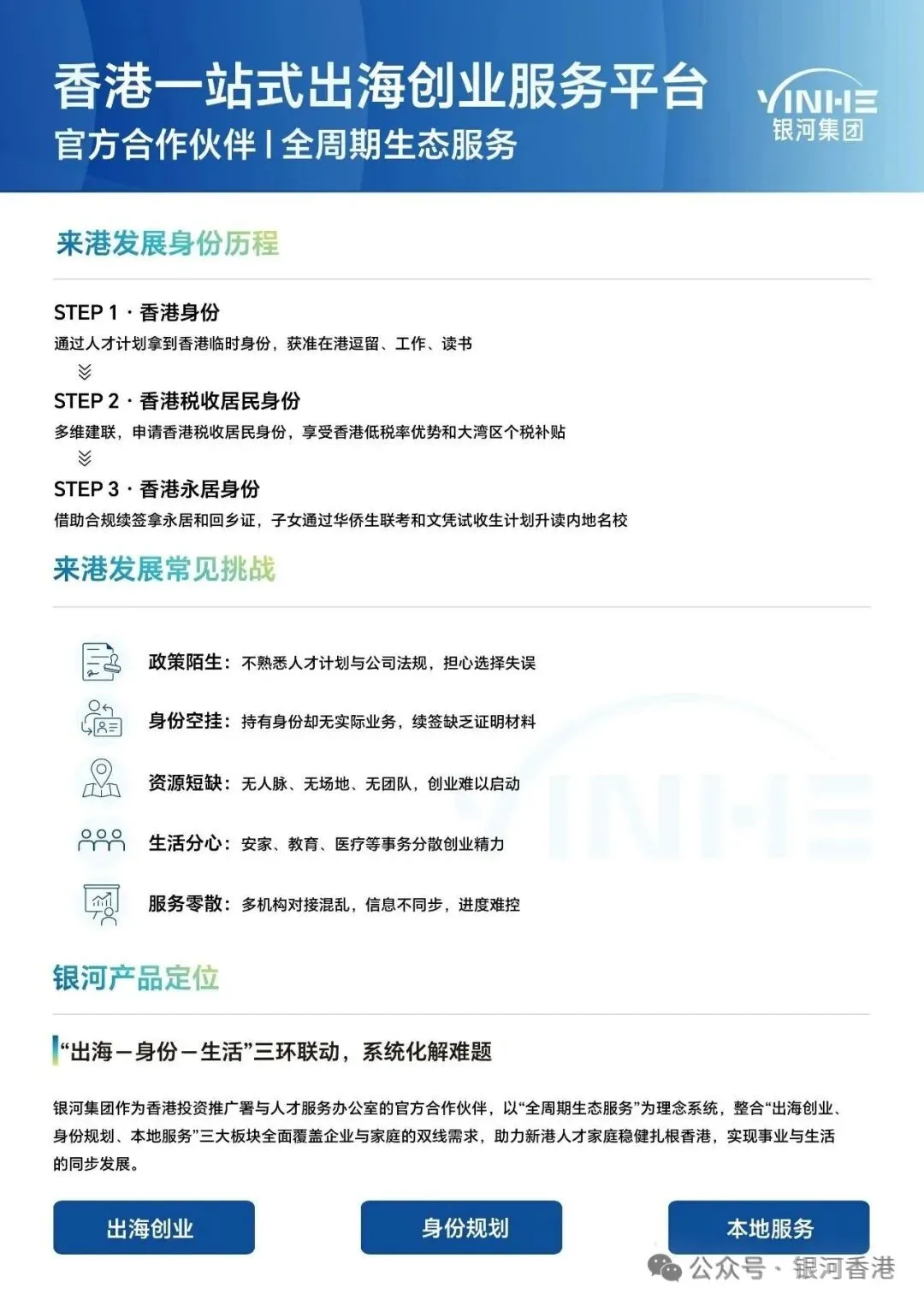银河集团是一站式香港创业出海服务平台,可以很好的协助你规划出海业务,包括但不限于解决税务身份、公司注册、税务合规等诸多问题。
