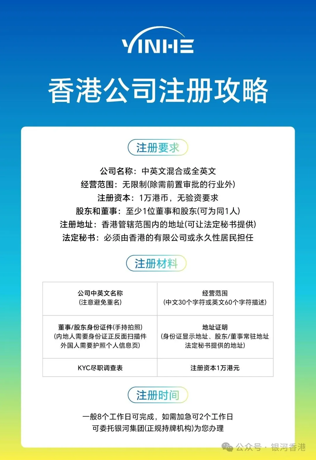 香港公司注册、银行开户、年审、审计、税务规划、强积金、税务身份等均可找银河集团办理(DD银河君mily:18148597167),或者【通过链接】测评和预约香港公司、创业评估↓↓↓