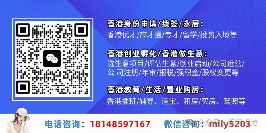 如果您这边需要申请香港身份或去香港创业,或单独续签&拿永居、香港中小学择校、香港公司注册公司等业务,加我咨询(V:mily5203)↓↓↓